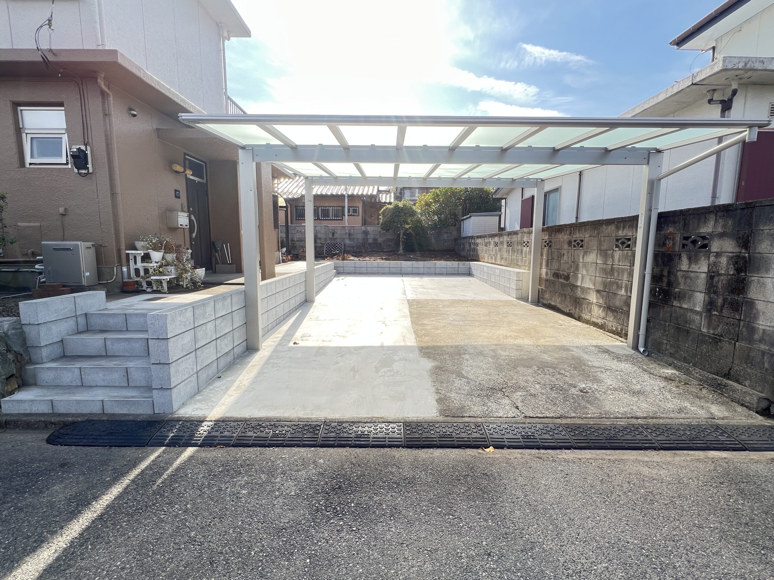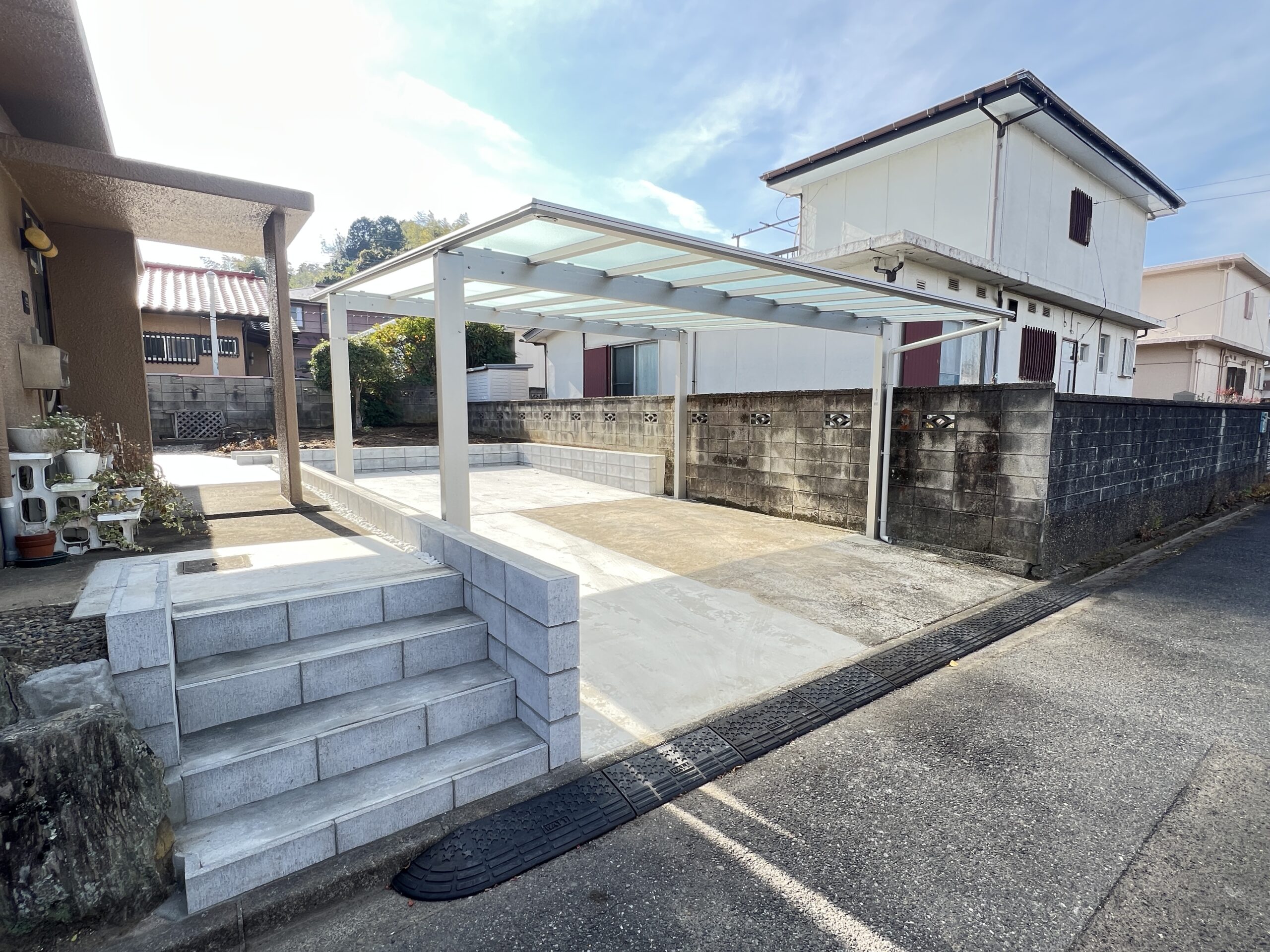今回、既存の駐車スペースを1台 → 最大4台まで駐車可能にする拡張工事を行いました。